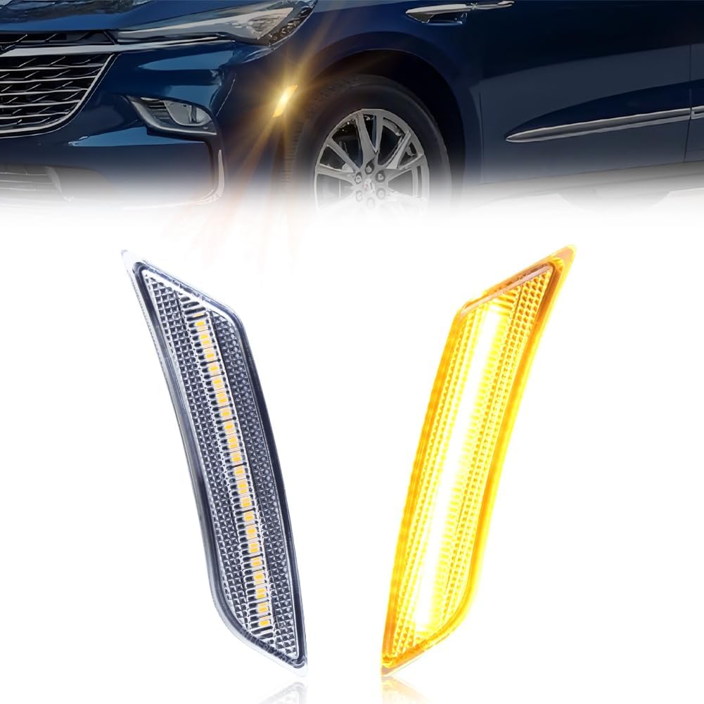 VYNTRAL Front Side Marker Light Compatible with 2022-2024 Buick Enclave & 2022-2023 Chevro-let Traverse, White LED Turn Signal Marker Light, OEM Part #84579397, 2 PCS, Smoked Lens