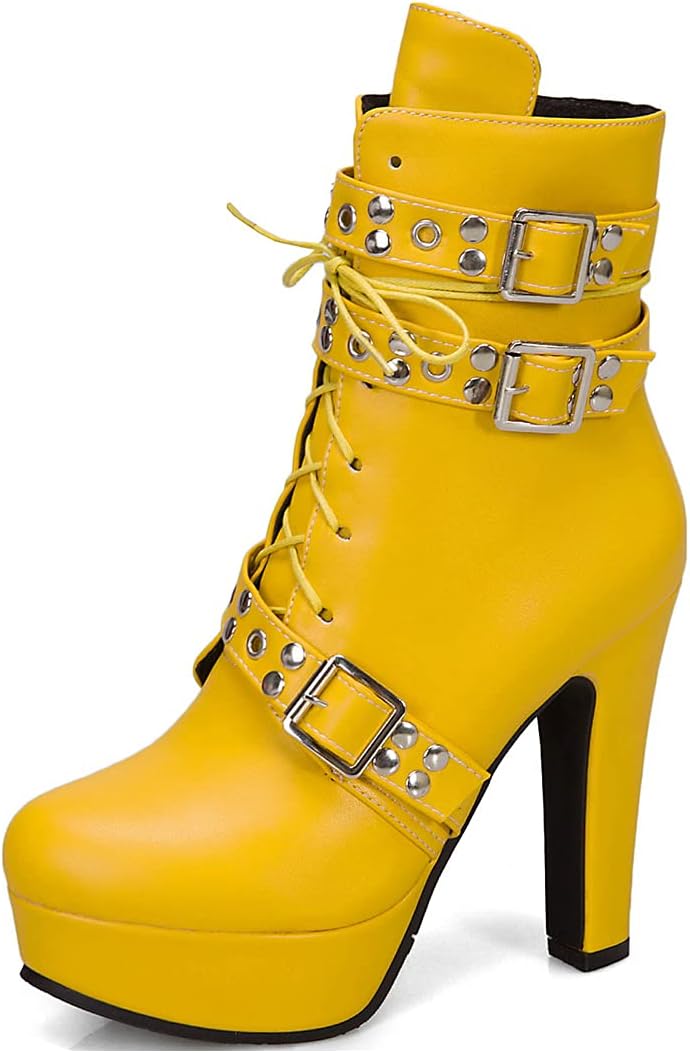 Women's Round Toe Platform High Heel Ankle Boots Fashion Buckle Lace Up Zipper Dressy Short BootiesSize Chart:Size 4 US = EU34 = Heel to Toe 22.0cm/8.66"Size 4.5 US = EU35 =Heel to Toe 22.5cm/8.86"Size 5 US = EU36 = Heel to Toe 23cm/9.06"Size 6 US = EU37 = Heel to Toe 23.5cm/9.25"Size 7 US = EU38 = Heel to Toe 24cm/9.45"Size 8 US = EU39 = Heel to Toe 24.5cm/9.65"Size 8.5 US = EU40 = Heel to Toe 25cm/9.84"Size 9 US = EU41 = Heel to Toe 25.5cm/10.04"Size 10 US = EU42 = Heel to Toe 26cm/10.24"Size 11 US = EU43 = Heel to Toe 26.5cm/10.43"Use your length and width measurements to find your shoe size on the above size chart. If your foot is fat or wide, please select a bigger size up. Thank you!PERFECT ITEM FEATURES:☛Item Type: Ankle-boots☛Main Material: High Quality Leather upper; Comfort Velvet Lining; Non-skid Rubber sole.☛toe_style: Round-toe☛Closure_type: Lace Up & Side Zipper☛Heel Height: Heel Height 4.52 inch☛Width: Medium (BM)☛Season: Spring/Autumn/Winter☛Color: Multiple colors optional☛Occasion Lifestyle: Fashion,Classic,Casual.